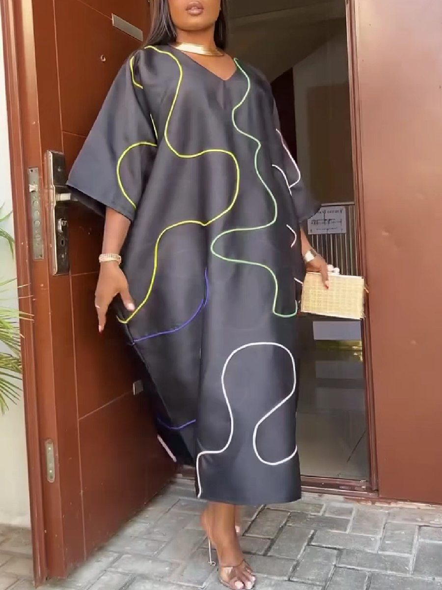 Abstract Line Print Satin Midi Dress