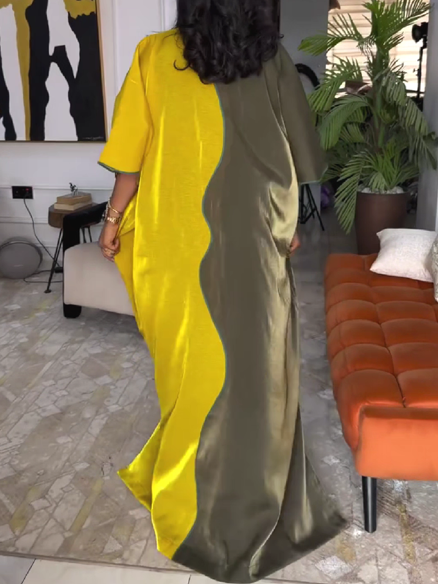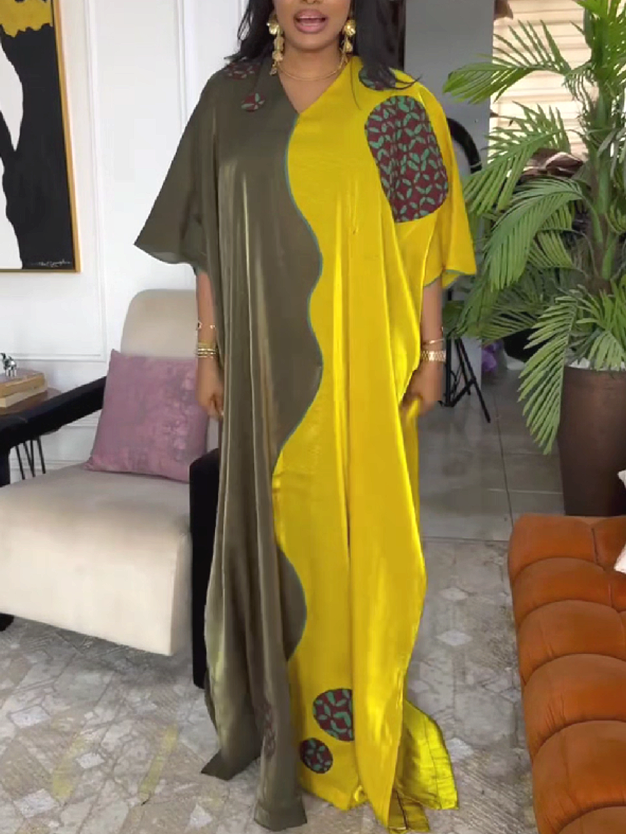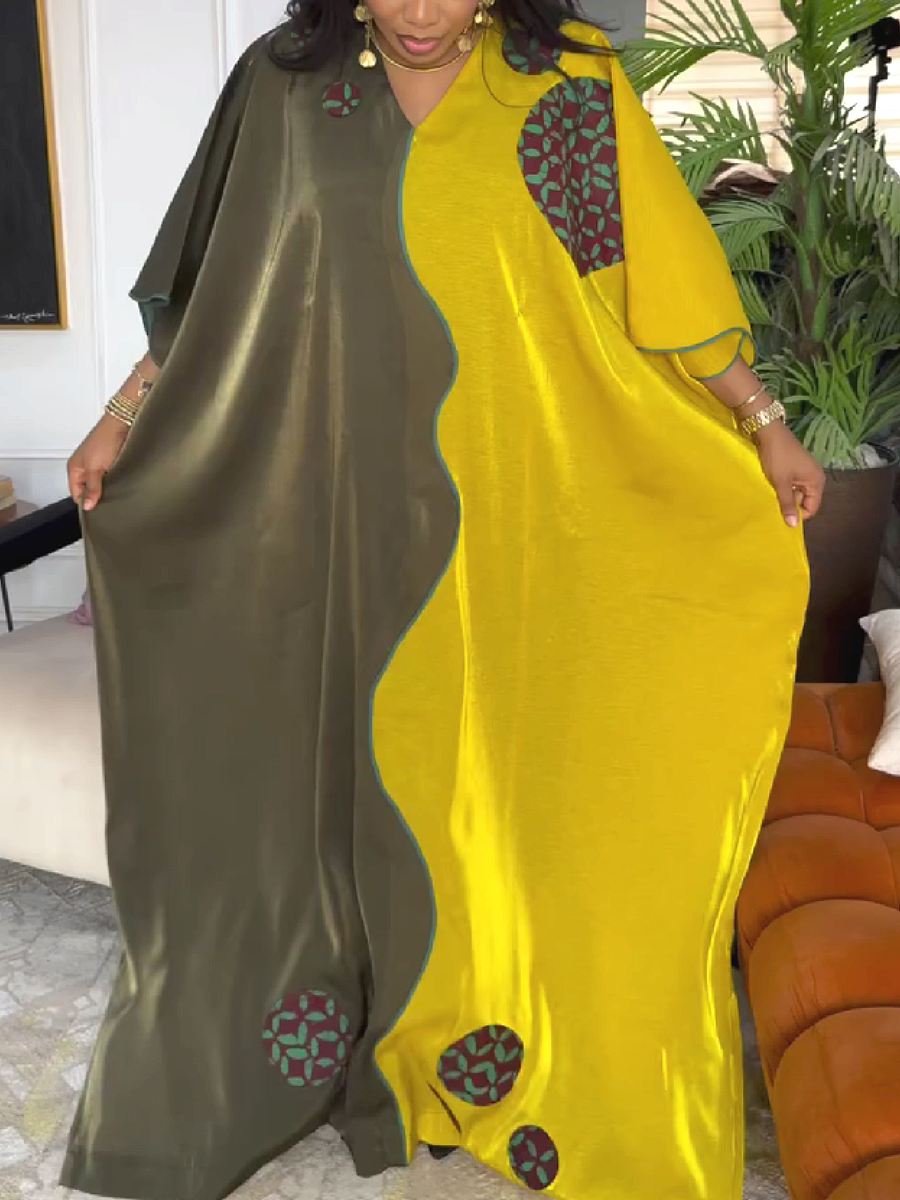 Asymmetrical Panel Maxi Dress with Embroidered Patches