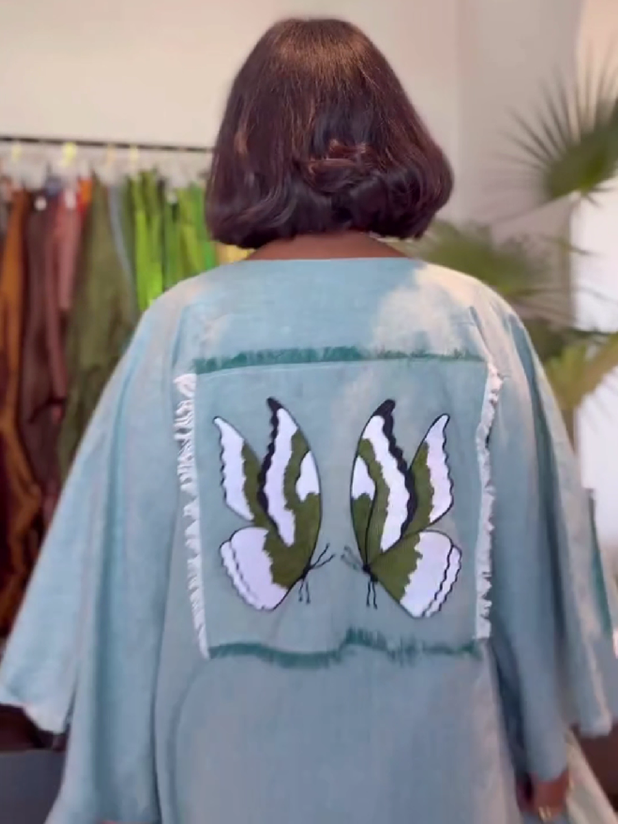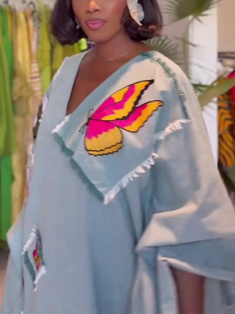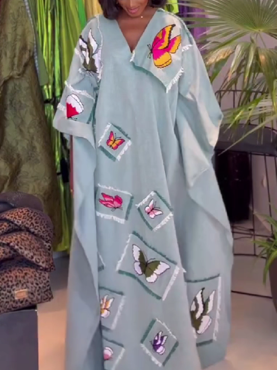 Butterfly Patchwork V-Neck Long Dress